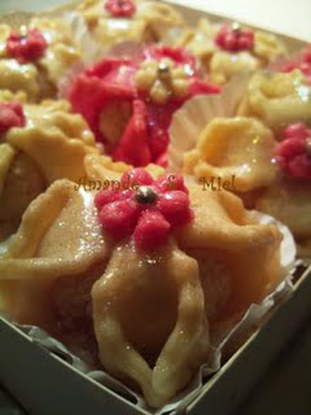 fleurs roses à fixer à l'aide d'une amande ou une perle alimentaire.